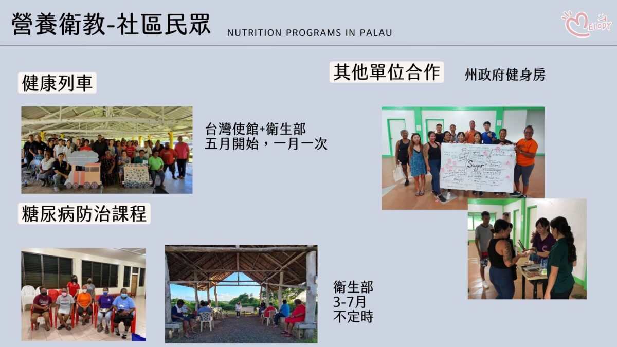這項計畫由台灣大使館、農技團、新光醫療隊、秀傳醫療團、兩位營養志工以及帛琉衛生部跨單位合作。